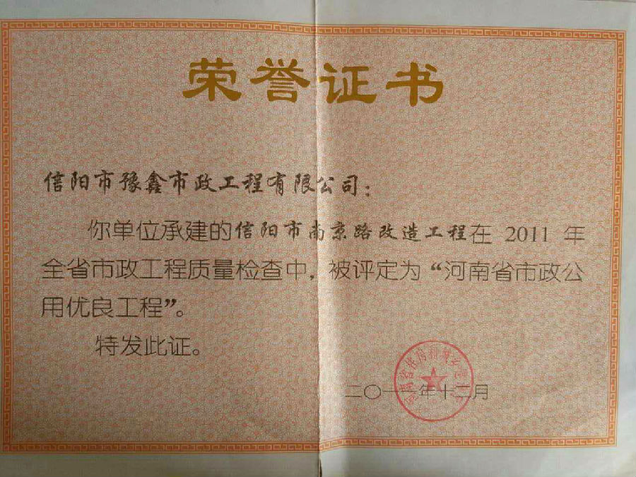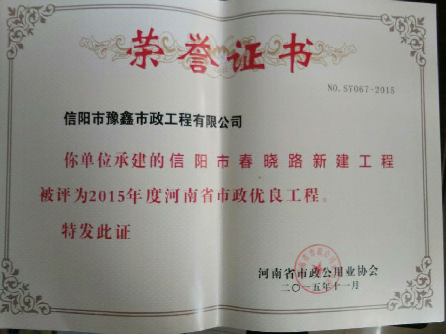 好風(fēng)憑借力,送我上青云。近年來,公司積極參與城市市政基礎(chǔ)設(shè)施建設(shè)施工,積極參與市場(chǎng)競(jìng)爭(zhēng),先后承擔(dān)施工了市政府重點(diǎn)工程南京路道路改造工程、春曉路道路改造工程,東方紅大道道路改造工程、龍江東路新建工程等重點(diǎn)民生工程,其中南京路道路改造工程被省建設(shè)廳評(píng)為“中州杯”, 春曉路和東方紅大道道路改造工程被省建設(shè)廳評(píng)為“省優(yōu)工程”,成為城區(qū)一道道亮麗的風(fēng)景線。參與施工了市典范小區(qū)“臺(tái)北城上城”、“恒大名都”以及師范學(xué)院、職業(yè)技術(shù)學(xué)院、交警支隊(duì)和軍區(qū)道路工程,參與施工了雞公山管理區(qū)、南灣管理區(qū)、明港鎮(zhèn)和羅山縣等部分道路小區(qū)工程施工,累計(jì)大小各類施工工程三百余項(xiàng),企業(yè)影響力不斷擴(kuò)大、輻射力不斷增強(qiáng),市場(chǎng)份額不斷提高,企業(yè)信譽(yù)不斷彰顯,為信陽城市建設(shè)做出了積極貢獻(xiàn),為企業(yè)的可持續(xù)發(fā)展插上了騰飛的翅膀。